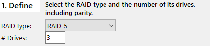 NOTE: For RAID-5 it is possible to enter one drive less than the original array size. If you need to do this you would still set the number of drives to 3 in the example above, but leave one drive entry empty.